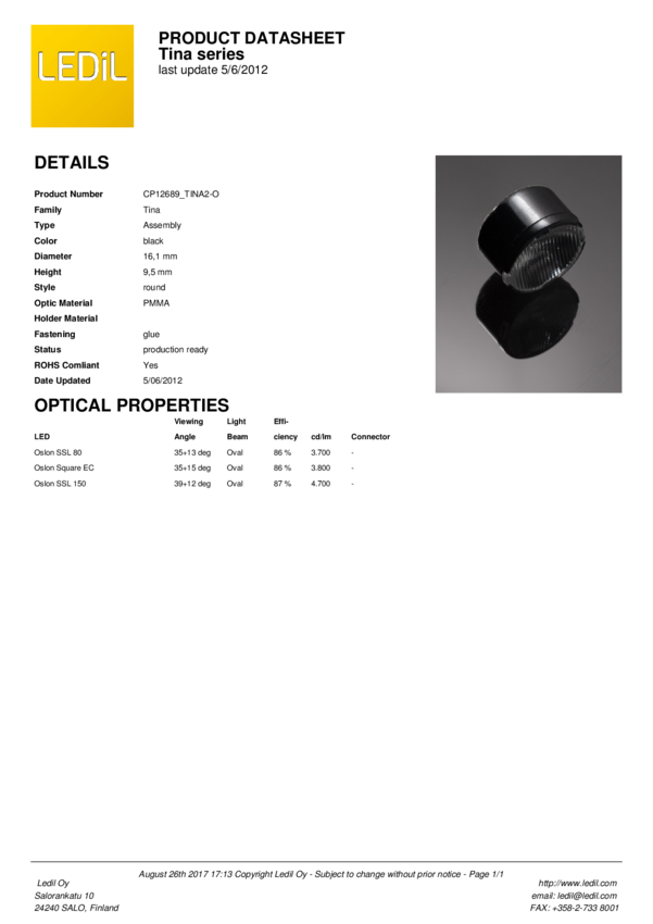 CP12689_TINA2-O ASSEMBLY ROUND 1 POS 16.1MM OD 9.5MM (H)