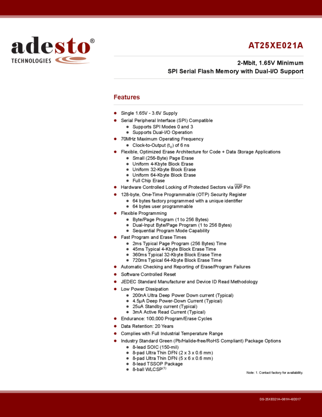 AT25XE021A-XMHN-T, AT25XE021A-XMHN-B