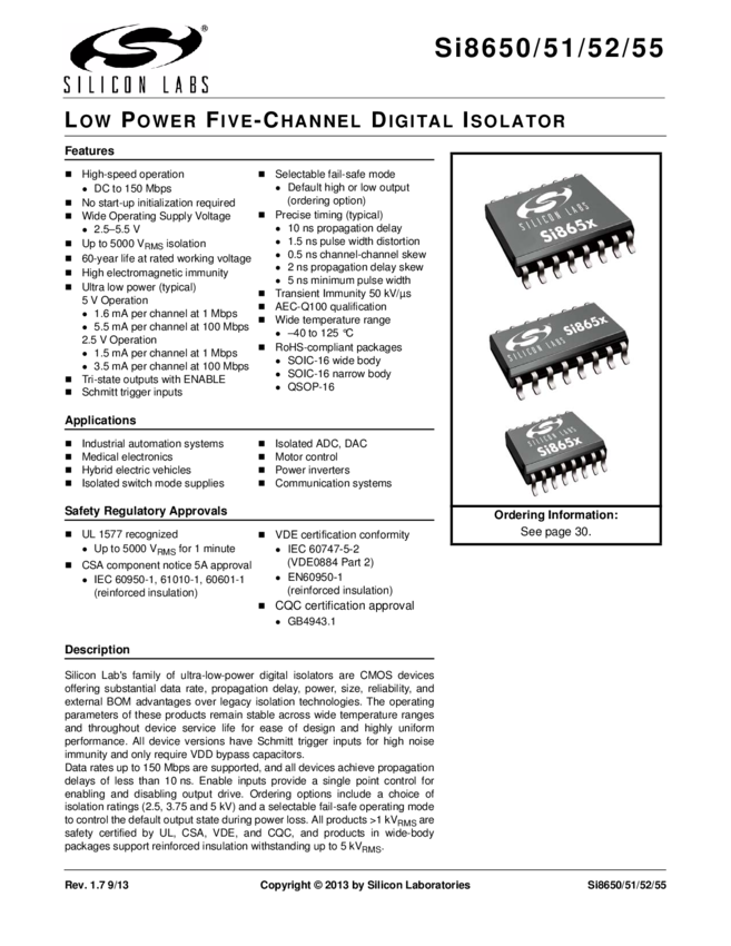 SI8650BD-B-ISR Low Power Five Channel Digital Isolator 16-Pin SOIC