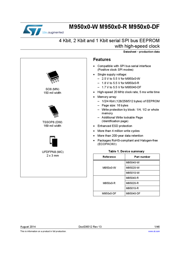 M95040-RMN6P, M95010-WMN6P, M95010-WDW6TP, M95040-WDW6TP, M95010-WMN6TP