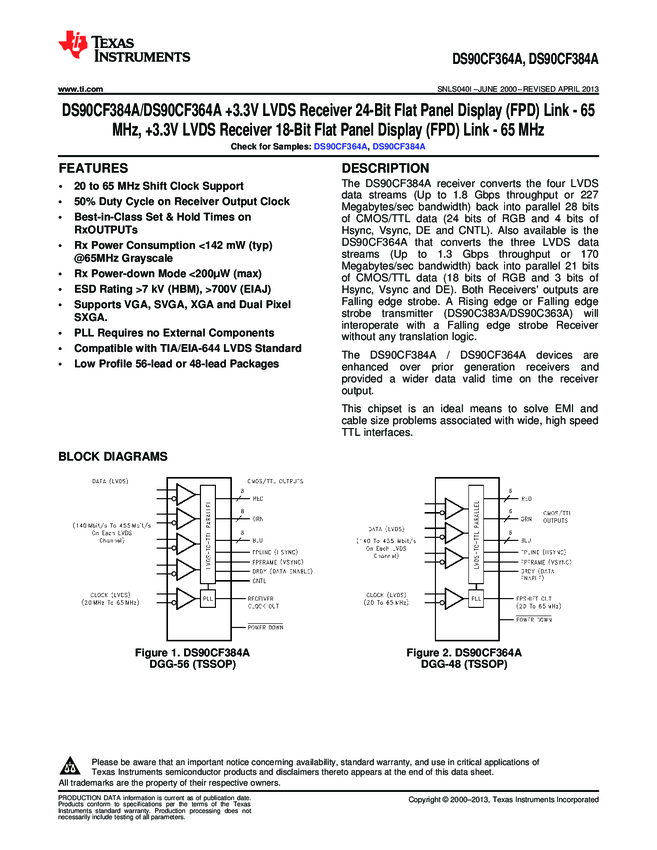 DS90CF364AMTD/NOPB, DS90CF364AMTDX/NOPB