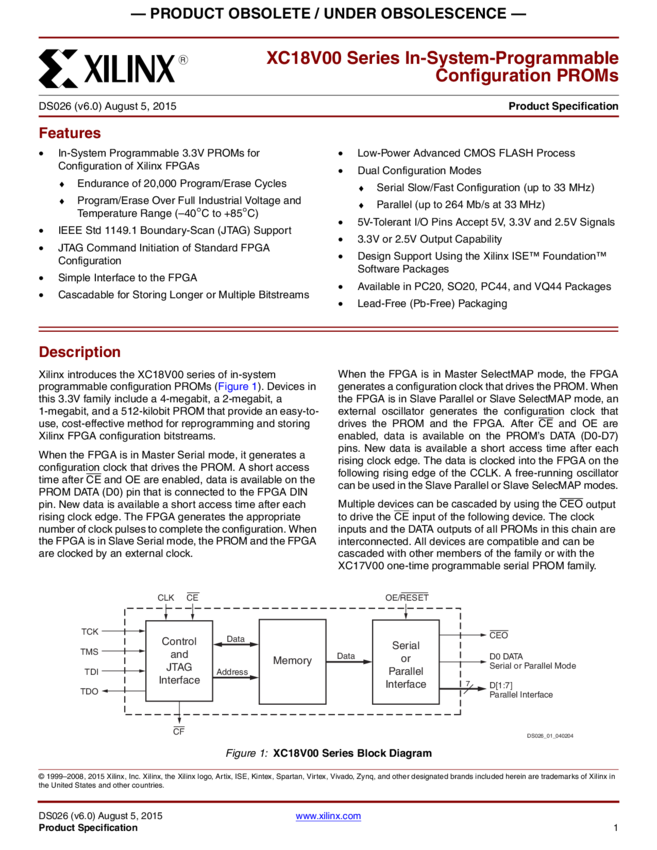 XC18V512VQG44C, XC18V512PCG20C, XC18V02PCG44C