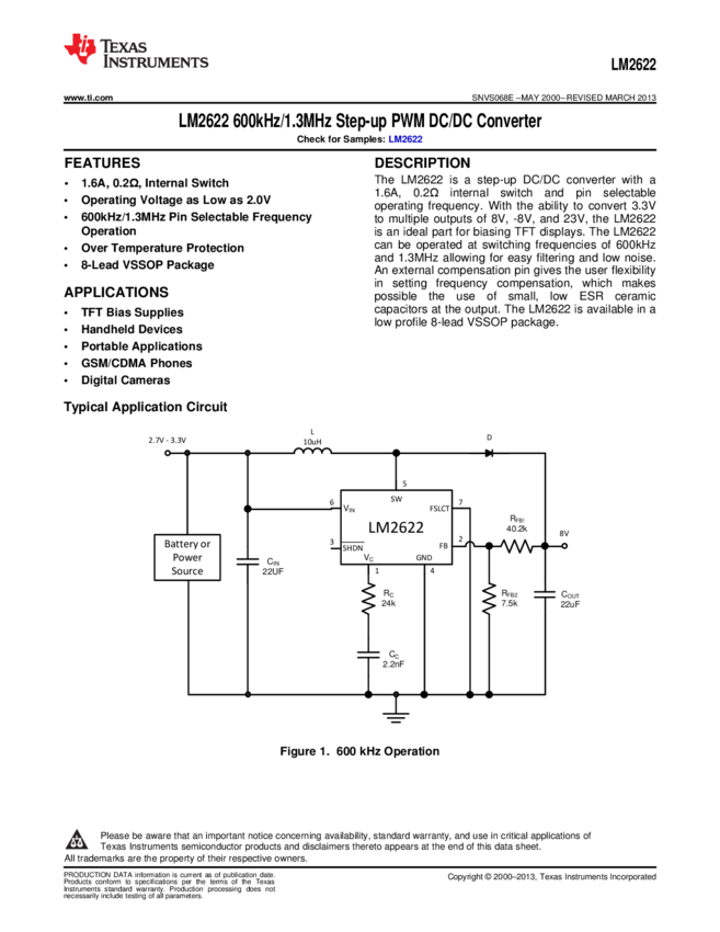 LM2622MMX-ADJ/NOPB Conv DC-DC Single Step Up 2V to 12V 8-Pin MSOP T/R