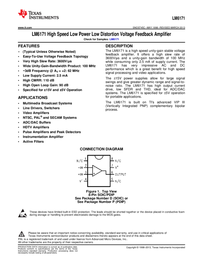 LM6171BIN/NOPB, LM6171BIM/NOPB