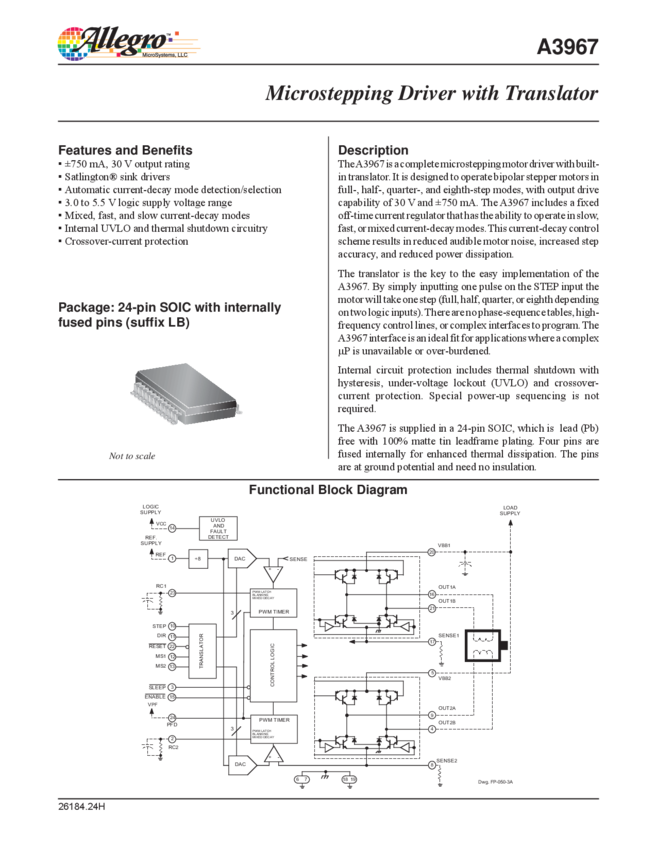 A3967SLBTR-T Stepper Motor Controller 24-Pin SOIC W T/R