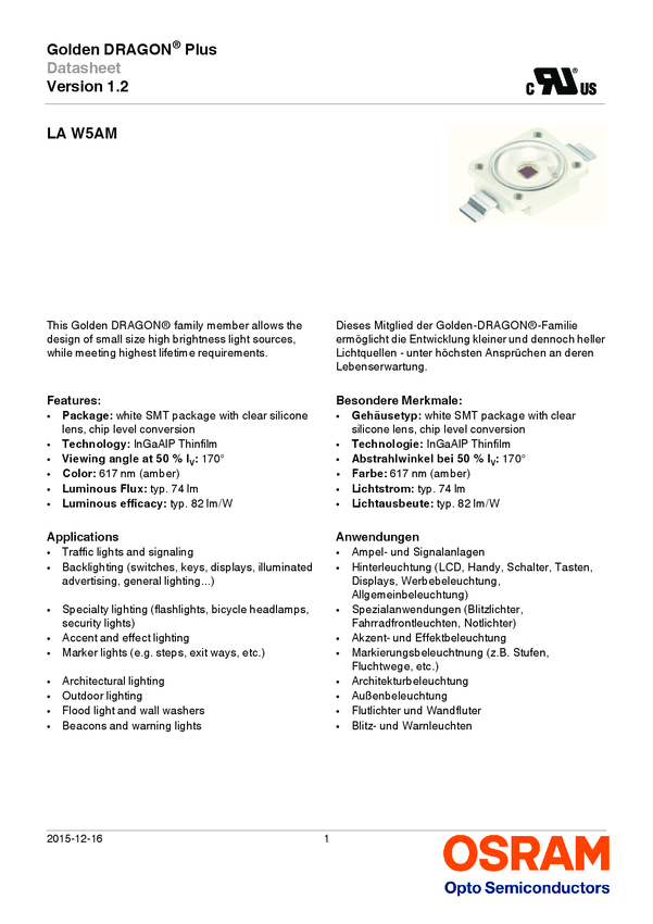LA W5AM-JZKY-24 LED Uni-Color Amber 97lm 625nm Chip LED 2-Pin SMD T/R