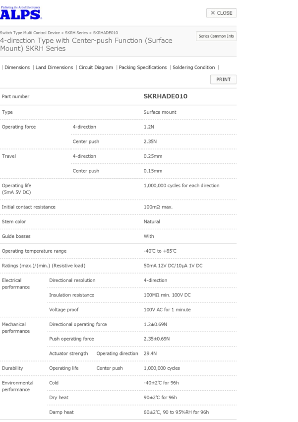 SKRHADE010 Switch Tactile Button 0.05A 12VDC 1.2N SMD T/R