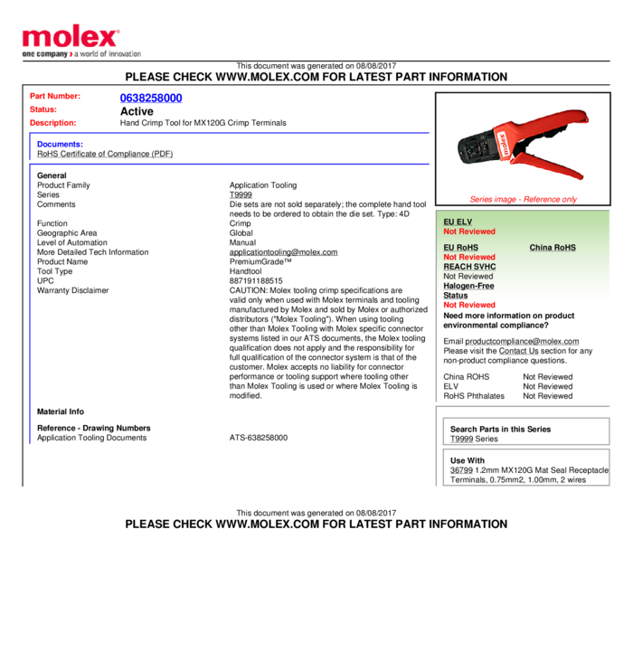 638258000 Hand Crimp Tool For MX120G Crimp Terminals