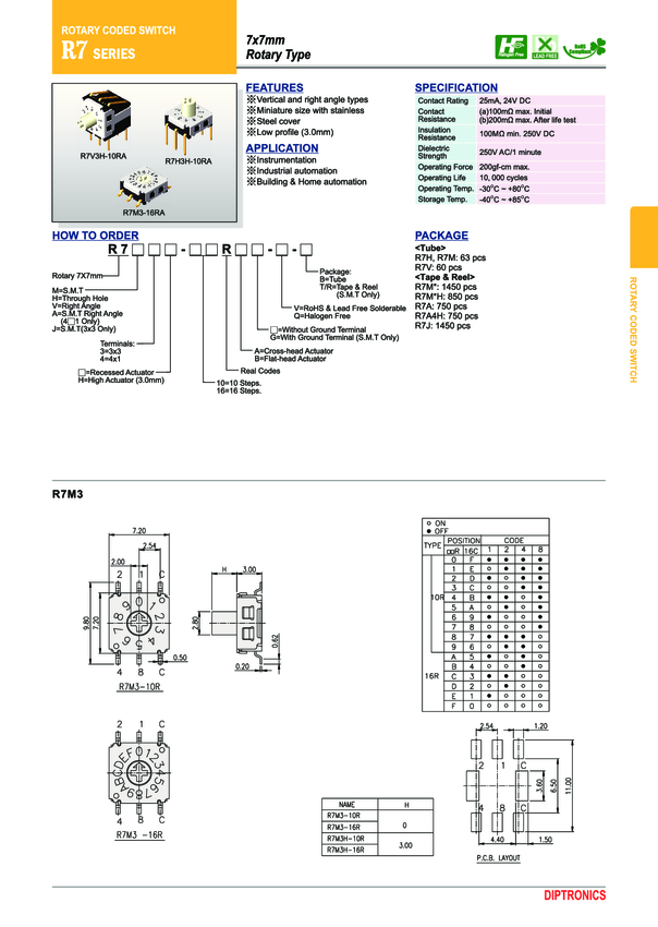 R7M3H-16RA-V-B Switch Rotary SP16T 16 Screwdriver Gull Wing 0.025A 24VDC