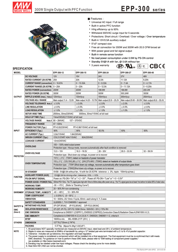 EPP-300-12 AC/DC Power Supply Single-OUT 12V 25A 300W
