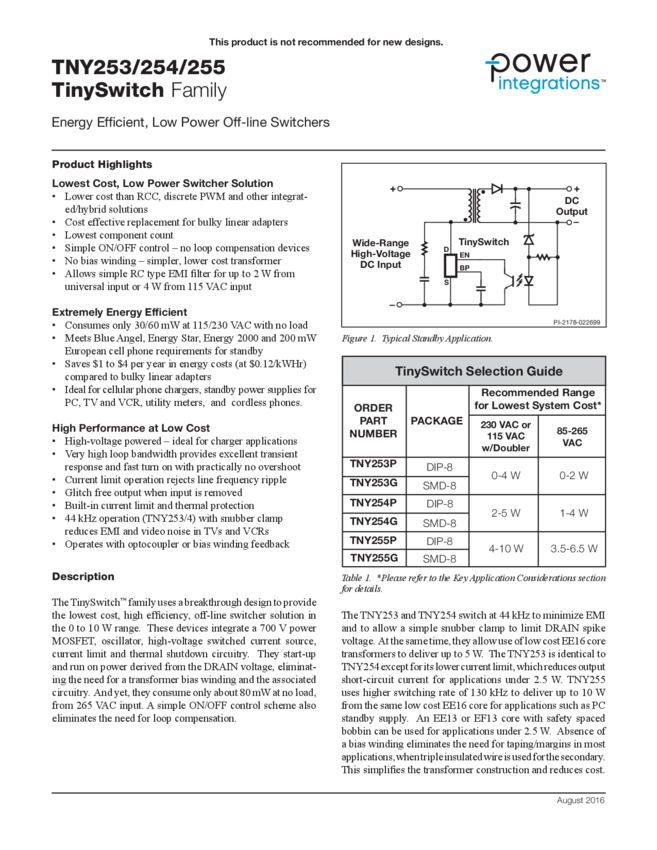 TNY253PN Off Line Switcher 8-Pin PDIP