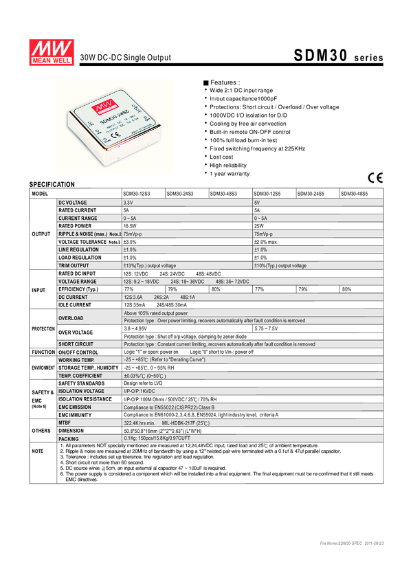 SDM30-48S12 Module DC-DC 1-OUT 12V 2.5A 30W 8-PIN DIP