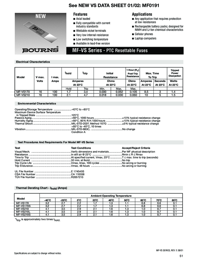MF-VS170-0 PTC Resettable Fuse 100A 16V Bulk