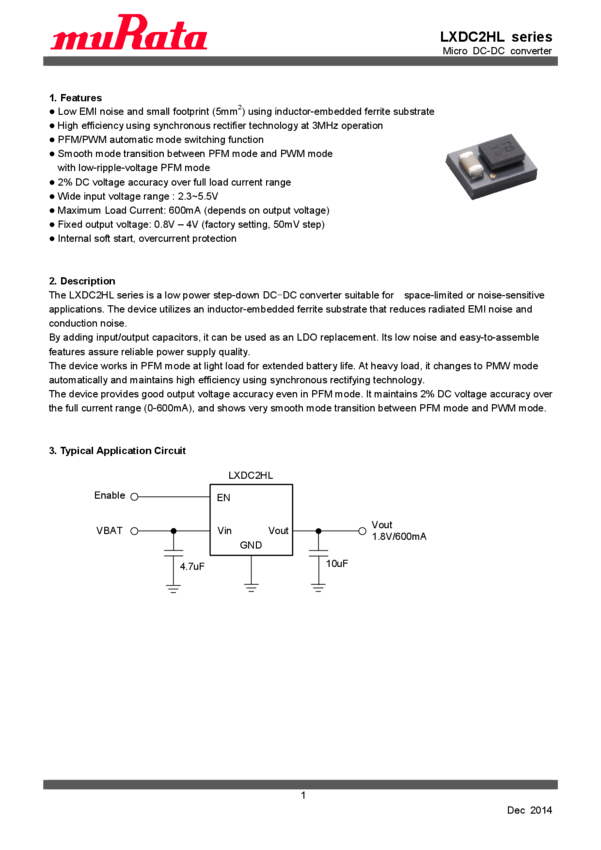LXDC2HL13A-082 Conv DC-DC Single Step Down 2.3V to 5.5V 4-Pin SMD T/R