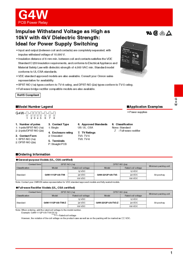 G4W-2212P-US-TV5 24DC, G4W2214PUSHP12DC, G4W2214PUSHP24DC