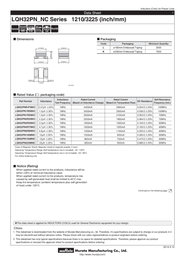 LQH32PN2R2NNCL, LQH32PN150MNCL, LQH32PN220MNCL, LQH32PN100MNCL, LQH32PN3R3NNCL, LQH32PN1R0NNCL