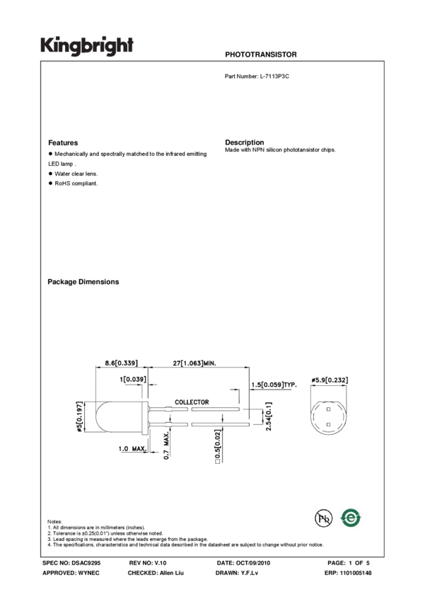 L-7113P3C Optocoupler DC-IN 1-CH Transistor DC-OUT 2-Pin Bag