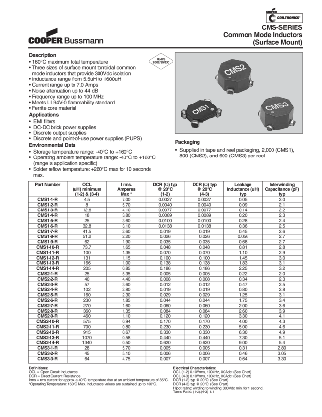 CMS2-11-R Ind Common Mode 12.6uH 100KHz Ferrite 4.1A T/R