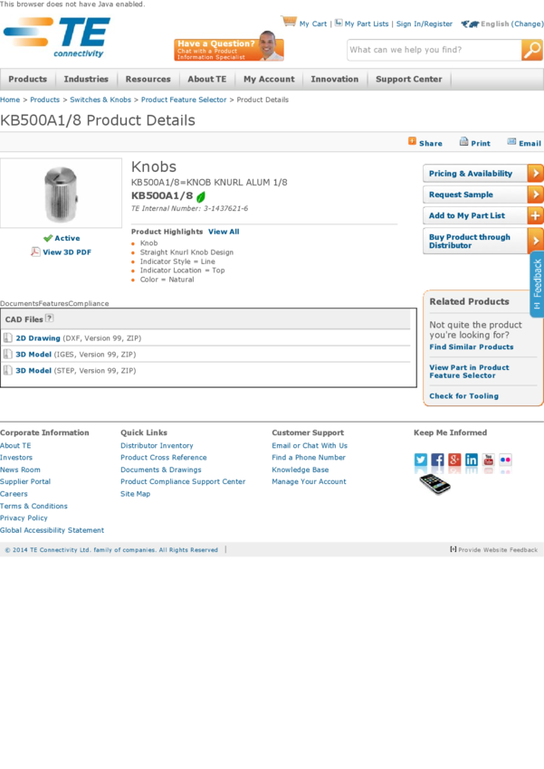 KB500A1/8 Switch Access Rotary Switch Round Knob