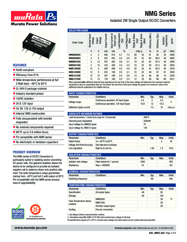 NMG1215SC, NMG0512SC, NMG0505SC, NMG1205SC, NMG0509SC, NMG1209SC, NMG1212SC