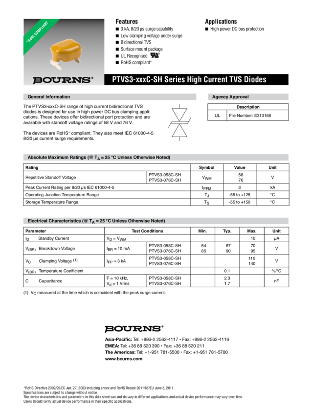 PTVS3-058C-SH Diode TVS Single Bi-Directional 58V 2-Pin SMD