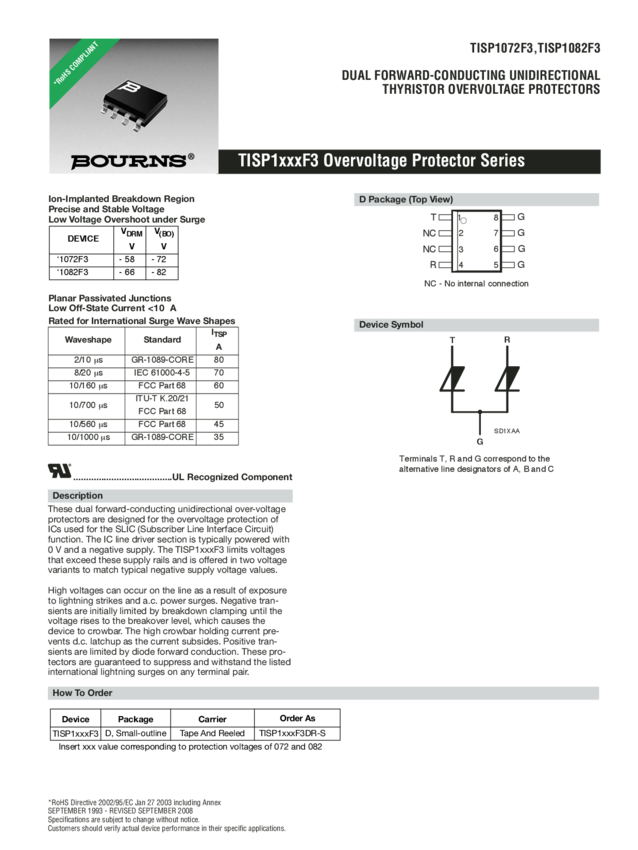 TISP1082F3DR-S Thyristor TSPD 58V 4.3A 8-Pin SOIC T/R