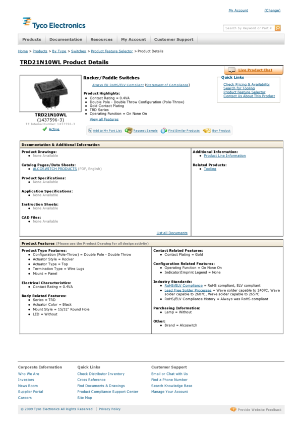 TRD21N10WL Switch Rocker ON None ON DPDT Wire Lug Curved Rocker 20VAC 20VDC 0.4VA