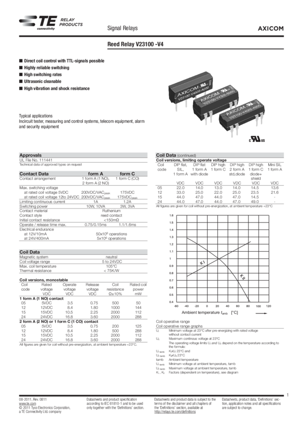 4-1393763-0 Electromechanical Relay SPDT 0.25A 24VDC 2KOhm Through Hole