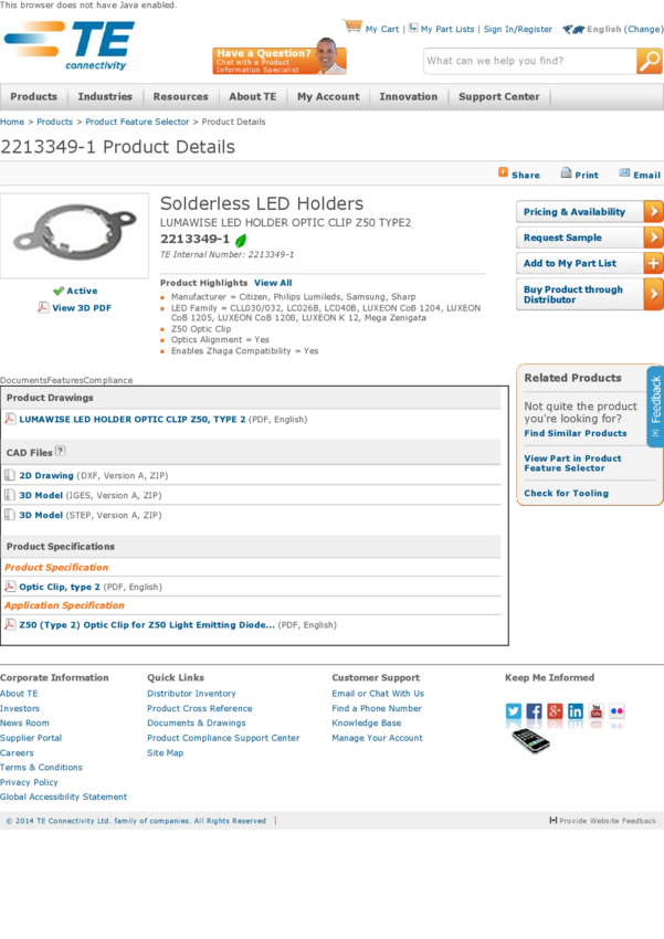 2213349-1 Z50 Optic Clip For CLL030/032, LC026B, LC040B, LUXEON CoB 1204 LEDs