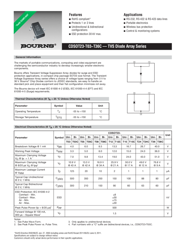 CDSOT23-T24, CDSOT23-T03C, CDSOT23-T03, CDSOT23-T05, CDSOT23-T05C, CDSOT23-T12C, CDSOT23-T24C, CDSOT23-T36C