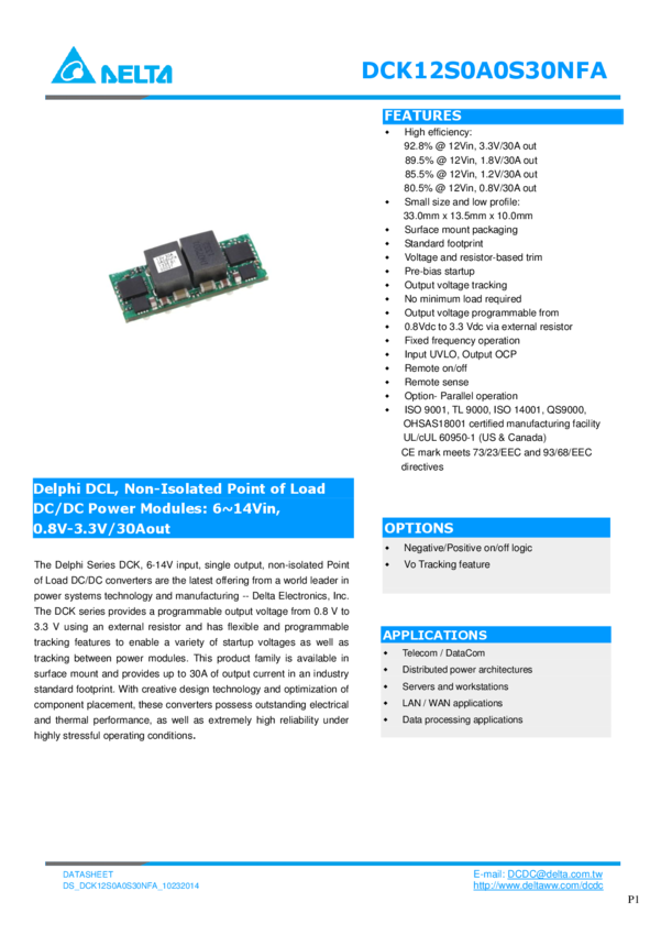 DCK12S0A0S30NFA Module DC-DC 1-OUT 0.8V to 3.3V 30A 10-Pin SMD T/R