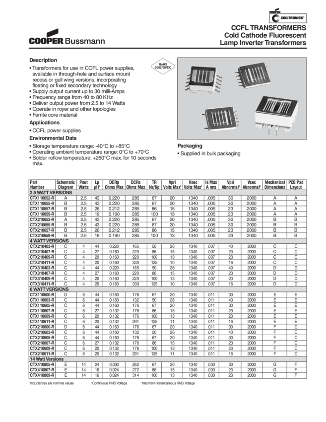 CTX210603-R Power Transformer 1:50 Dual+Auxilary Prim. Single Sec. 26V Prim. 1340V Sec....