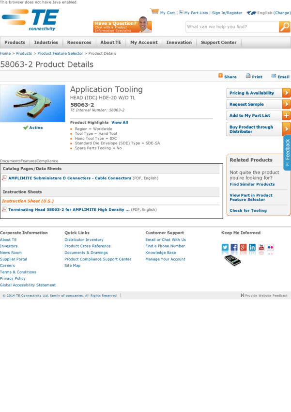 58063-2 Terminating Head Designed To Terminate Unstripped Discrete Wire Sizes 30 Th...