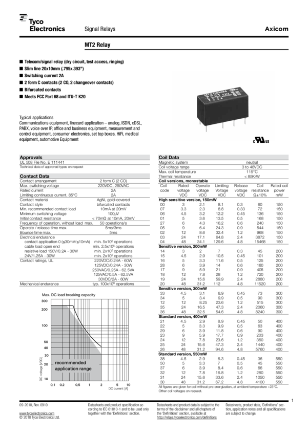 6-1462000-1 Electromechanical Relay DPDT 2A 24VDC 1.05KOhm Through Hole