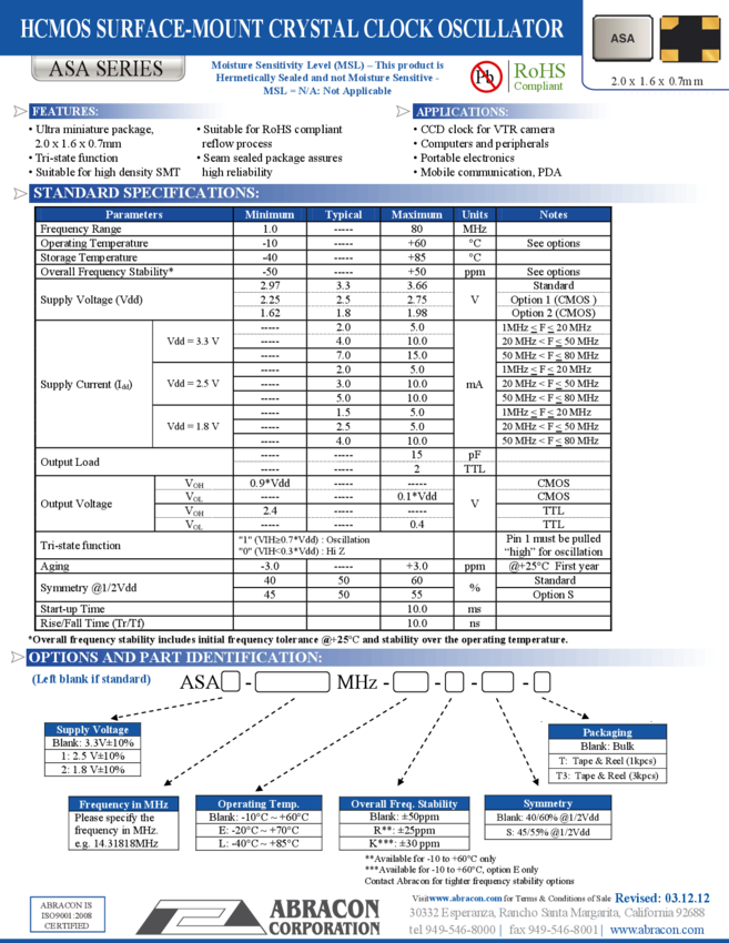- ASA2-25.000MHZ-L-T, ASA-33.333MHZ-L-T, ASA1-25.000MHZ-L-T3, ASA-22.000MHZ-L-T, ASA2-12.288MHZ-L-T, ASA-19.200MHZ-L-T, ASA2-27.000MHZ-L-T, ASA2-26.000MHZ-L-T