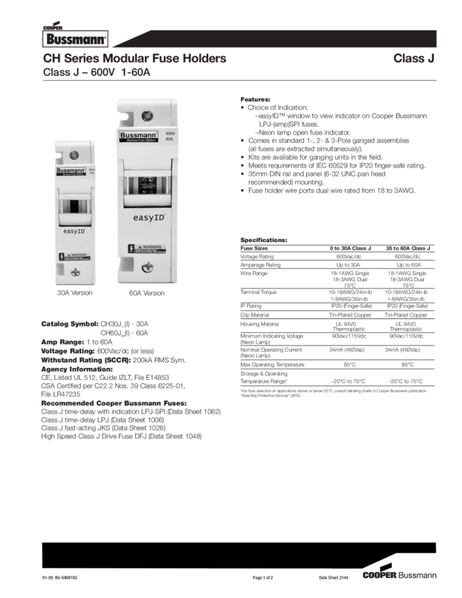 CH60J3 Fuse Holder 30A 600VDC/600VAC Screw DIN Rail