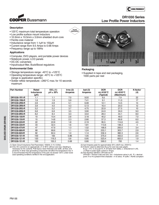 DR1030-5R2-R, DR1030-680-R, DR1030-6R8-R, DR1030-330-R, DR1030-121-R, DR1030-470-R, DR1030-101-R, DR1030-100-R, DR1030-151-R