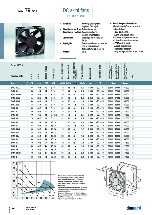 8412 NGME DC Fan Sintec Bearing 24V 2.4W 46.5CFM 37dB Flange Mount