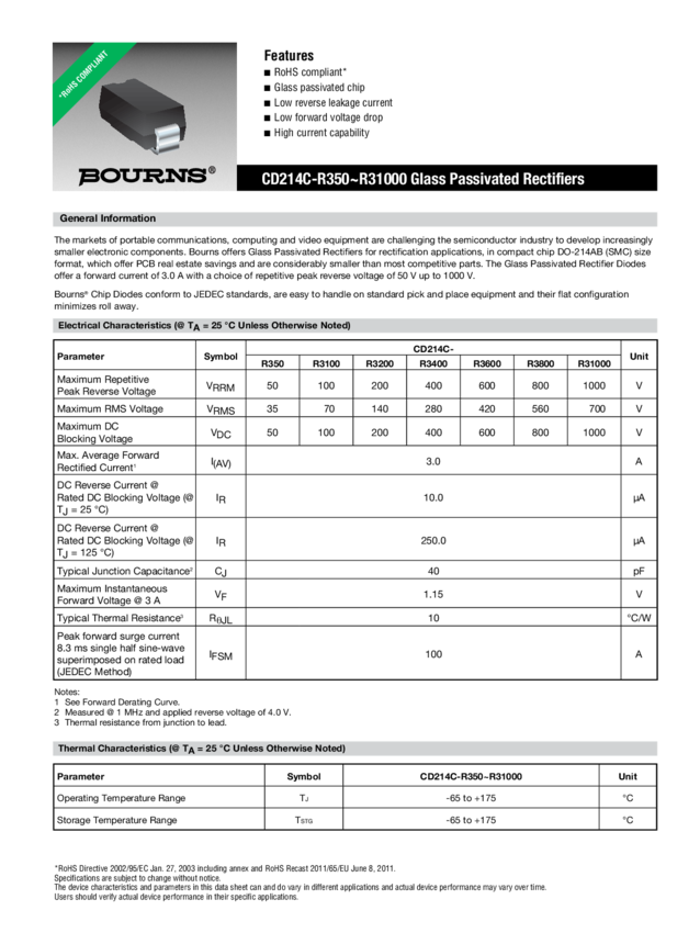 CD214C-R3200 Diode 50V 3A 2-Pin DO-214AB T/R