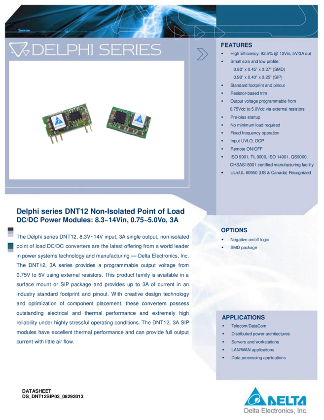DNT12S0A0S03NFA Module DC-DC 1-OUT 0.75V to 5V 3A 15W 5-Pin SMD Embossed T/R