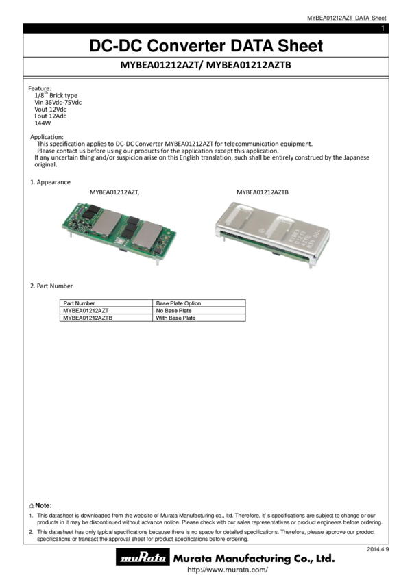 MYBEA01212AZT Module 1-OUT 12V 12A 144W 8-Pin 1/8-Brick Tray