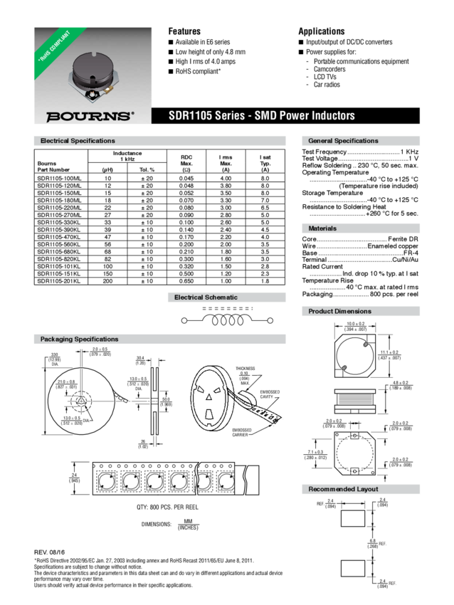 SDR1105-201KL, SDR1105-180ML, SDR1105-330KL, SDR1105-680KL, SDR1105-220ML, SDR1105-820KL, SDR1105-390KL, SDR1105-100ML, SDR1105-151KL