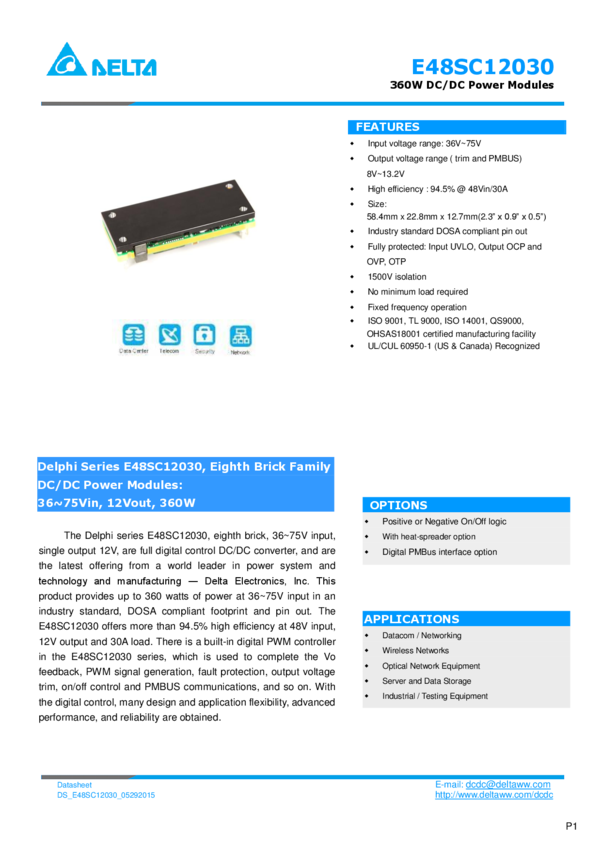 E48SC12030NRFH Module DC-DC 1-OUT 12V 30A 360W 13-Pin 1/8-Brick