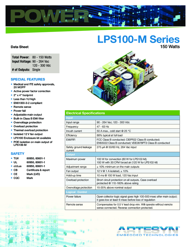 LPS105-M AC/DC Power Supply Single-OUT 5V 16A 150W 18-Pin
