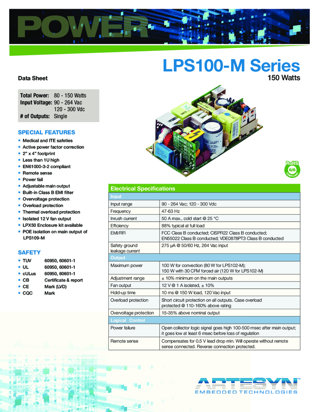 LPS108-M AC/DC Power Supply Single-OUT 48V 2.1A 150W 18-Pin
