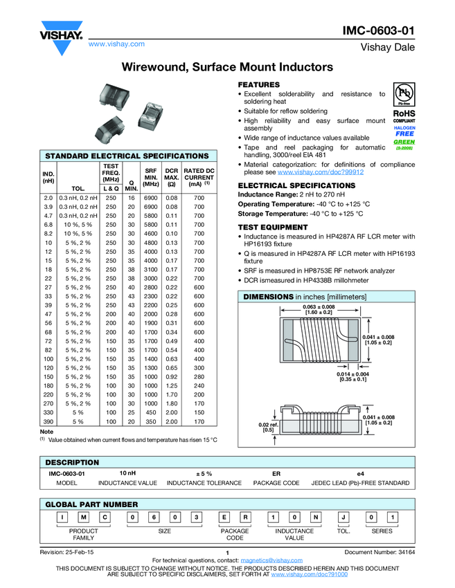 IMC0603ER6N8J01, IMC0603ER15NJ01, IMC0603ERR15J01, IMC0603ERR22J01
