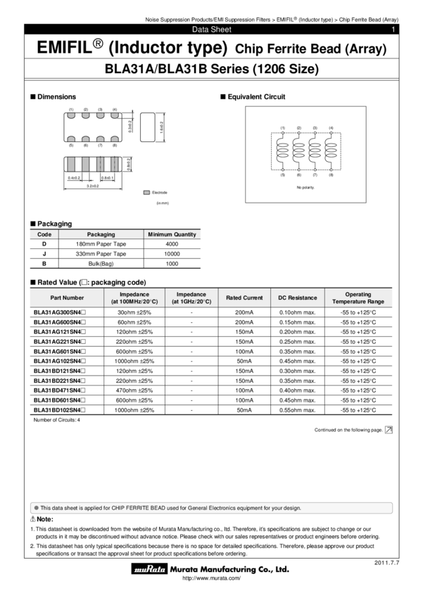 - BLA31AG221SN4D, BLA31AG601SN4D, BLA31AG600SN4D, BLA31BD221SN4D, BLA31BD471SN4D, BLA31BD601SN4D, BLA31AG121SN4D, BLA31AG102SN4D, BLA31BD121SN4D