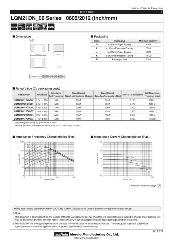 LQM21DN1R0N00D, LQM21DN4R7N00D, LQM21DN220N00L, LQM21DN2R2N00D, LQM21DN470N00L