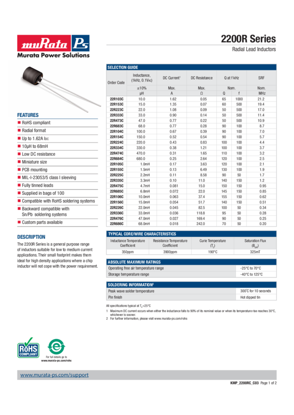 22R226C, 22R333C, 22R106C, 22R155C, 22R225C, 22R334C, 22R683C, 22R473C, 22R153C, 22R154C, 22R156C, 22R223C