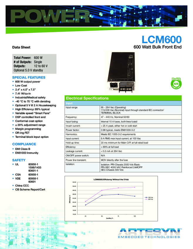 LCM600Q-T-N-4 AC/DC Power Supply Single-OUT 24V 27A 600W